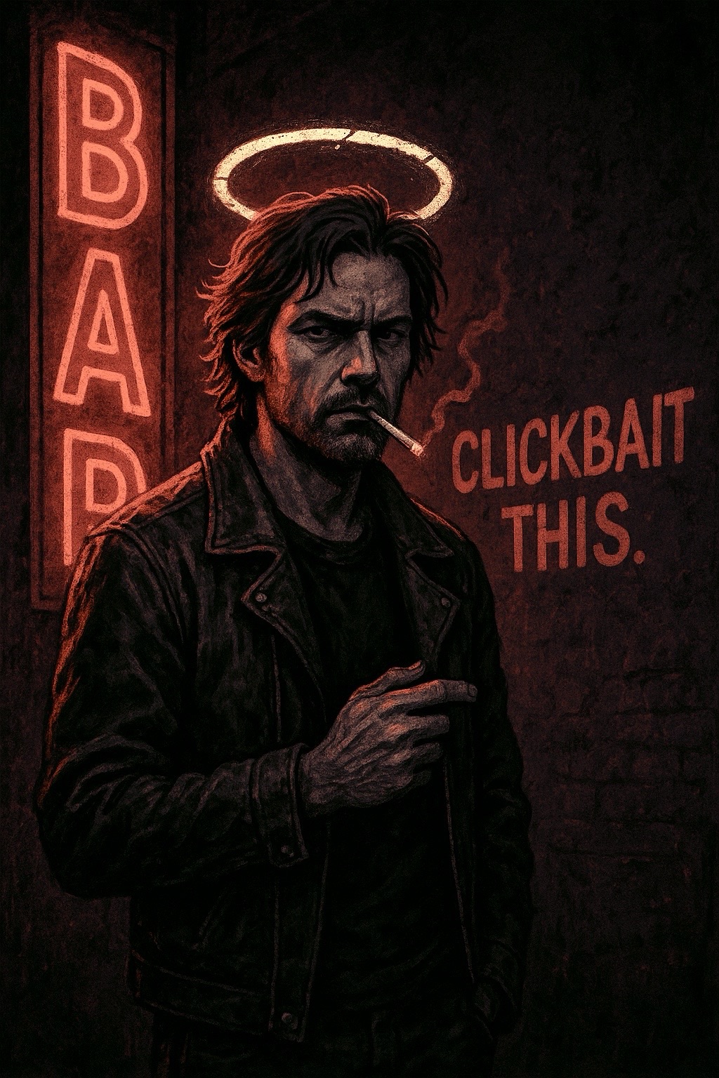 Some clown strutted onto my blog today — not once, but twice — just to announce, chest puffed and brain empty, that my post was “clickbait.”